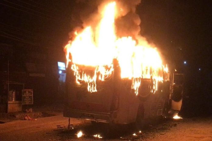 धरान अटल ग्यारेजमा बस आगलागी: तीन नष्ट, तीनमा क्षति